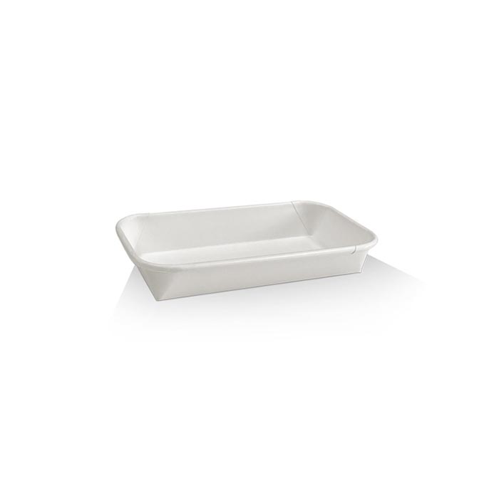 - Sushi tray made from paper with aqueous coating. When paired with matching lids, these sushi trays are stackable.