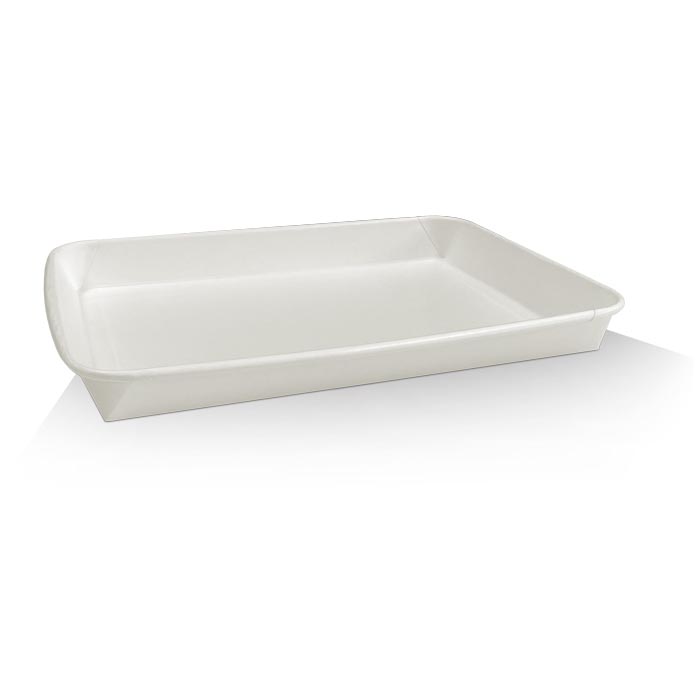 - Sushi tray made from paper with aqueous coating. When paired with matching lids, these sushi trays are stackable.
