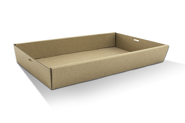 Brown Corrugated Rectangle Catering Tray Large 50mm High Sides 100pc/ctn